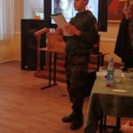 28 ноября в Духовно-просветительском центре имени Царственных Страстотерпцев состоялись Рождественские региональные чтения,секция «Жизнь прихода в годы Великой Отечественной войны». Встречу провел Благочинный Спасского городского округа иерей Максим Зорин. В числе других участников, в чтениях принимали участие дети воскресной школы Архиерейского подворья Спасского кафедрального собора. С презентацией «Мои прадедушки — воины Великой Отечественной» выступил Герман Царан, песню «Экипаж- одна семья» представили Илья Соков, Иван Чикаров и Яков Царан.